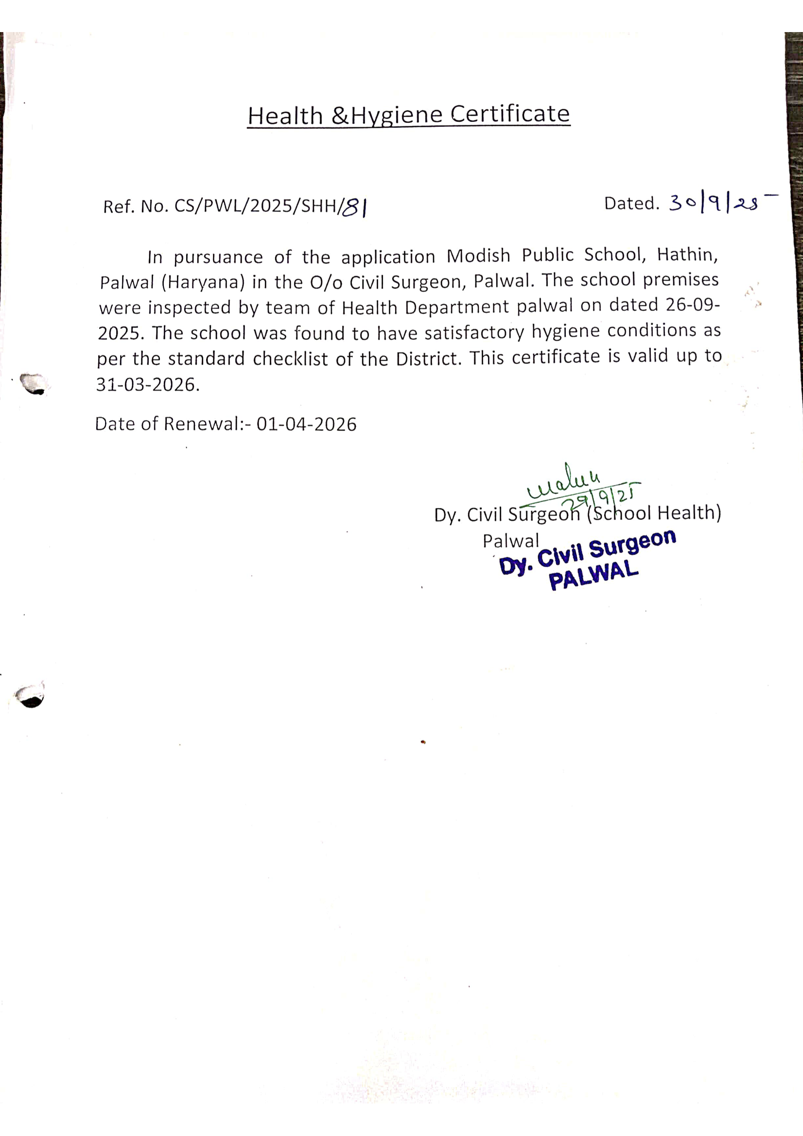 Health & Hygiene Certificate